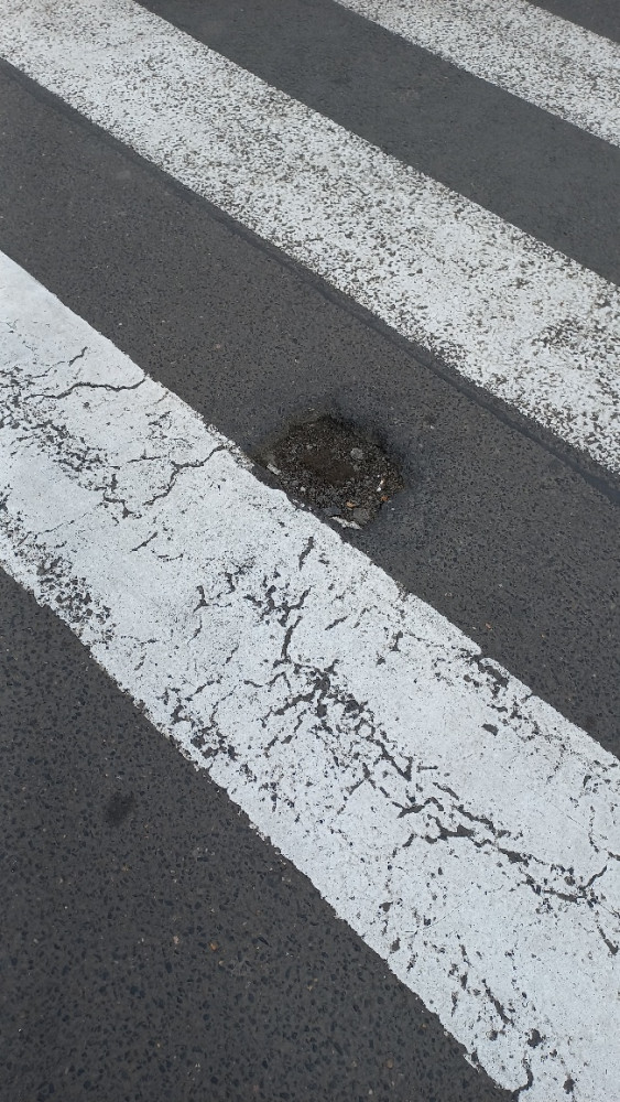 Na přechodu pro chodce u obchodu Albert. dira cca,20x20cm.hloubka 8cm.