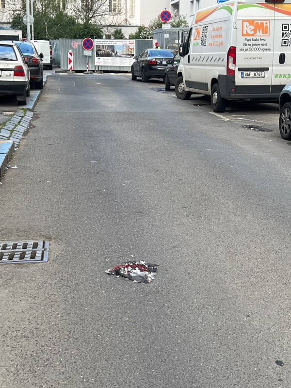 Mrtvy holub, uklidova sluzba, ktera chodnik uklizela to bez povsimnuti oka presla. Prosim o odstraneni. Dekuji.