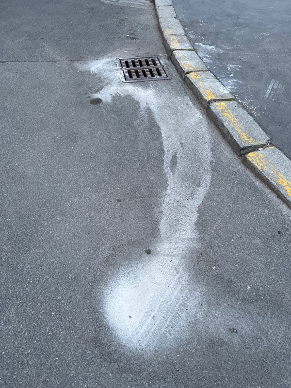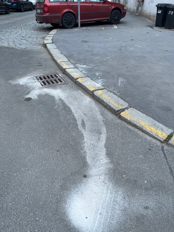 Rozlita barva. Moc dekuju za odstraneni. Roh Kristanova a Sudomerska.