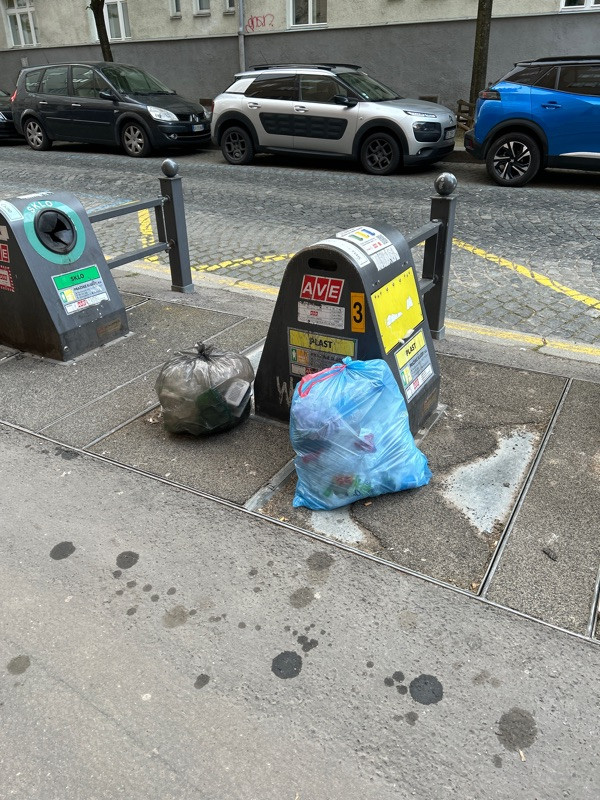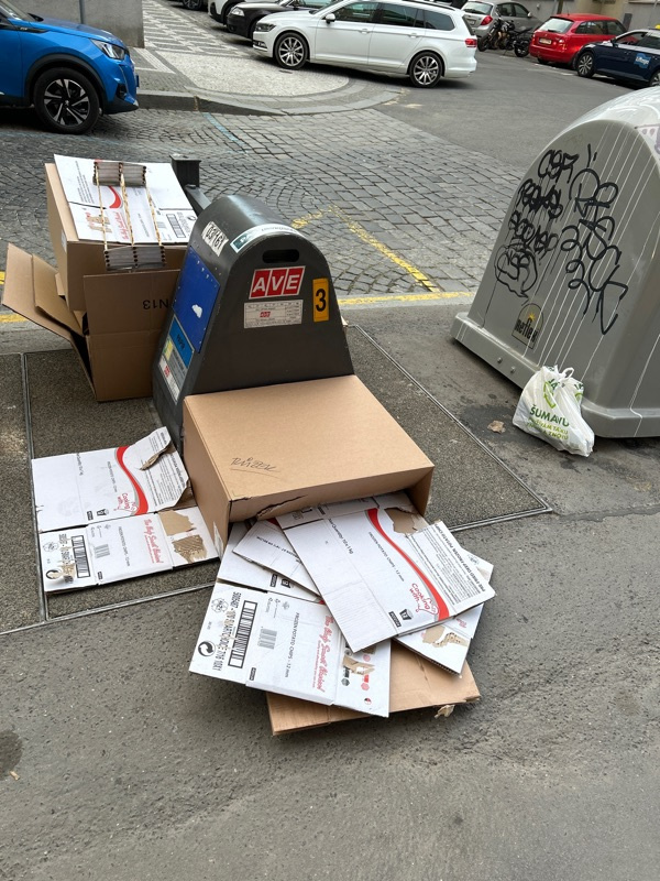 Prosím o uklid, nepořádek okolo téměř prázdných nádob na tříděný odpad.Dekuju