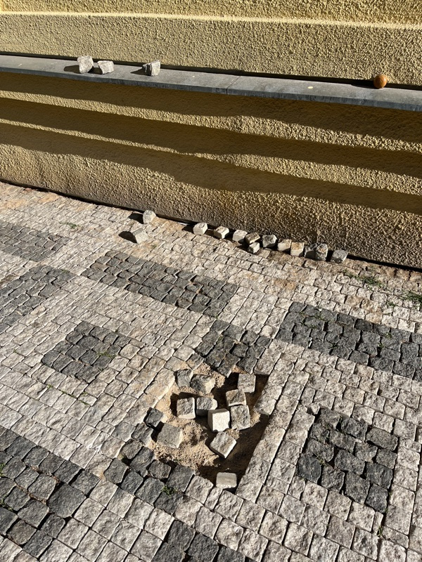 Uvolněné kostky v chodníku, Přemyslovská 27