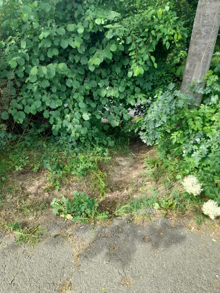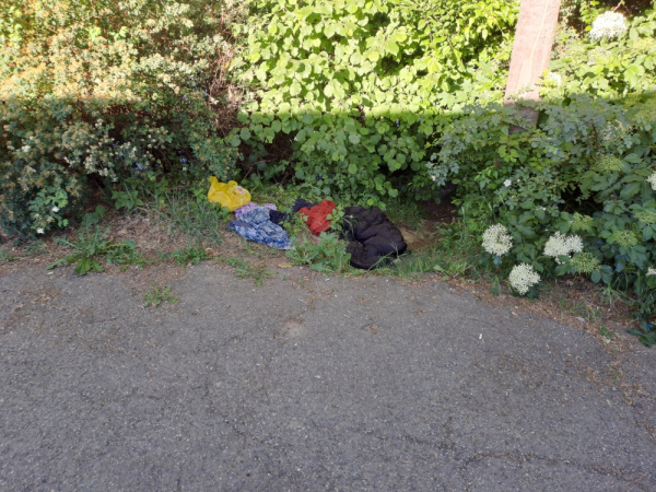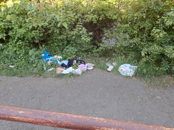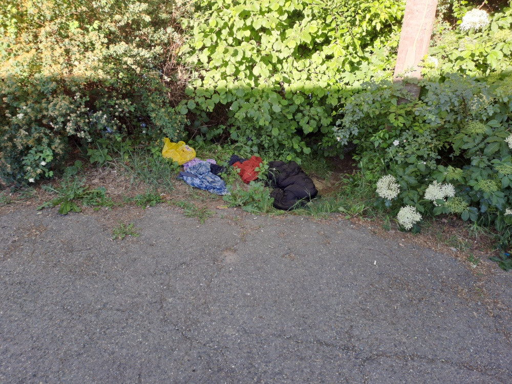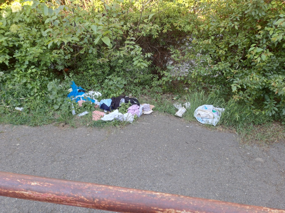 sběrový textil /cca 3 tašky/ vysypat mezi keře podél cesty