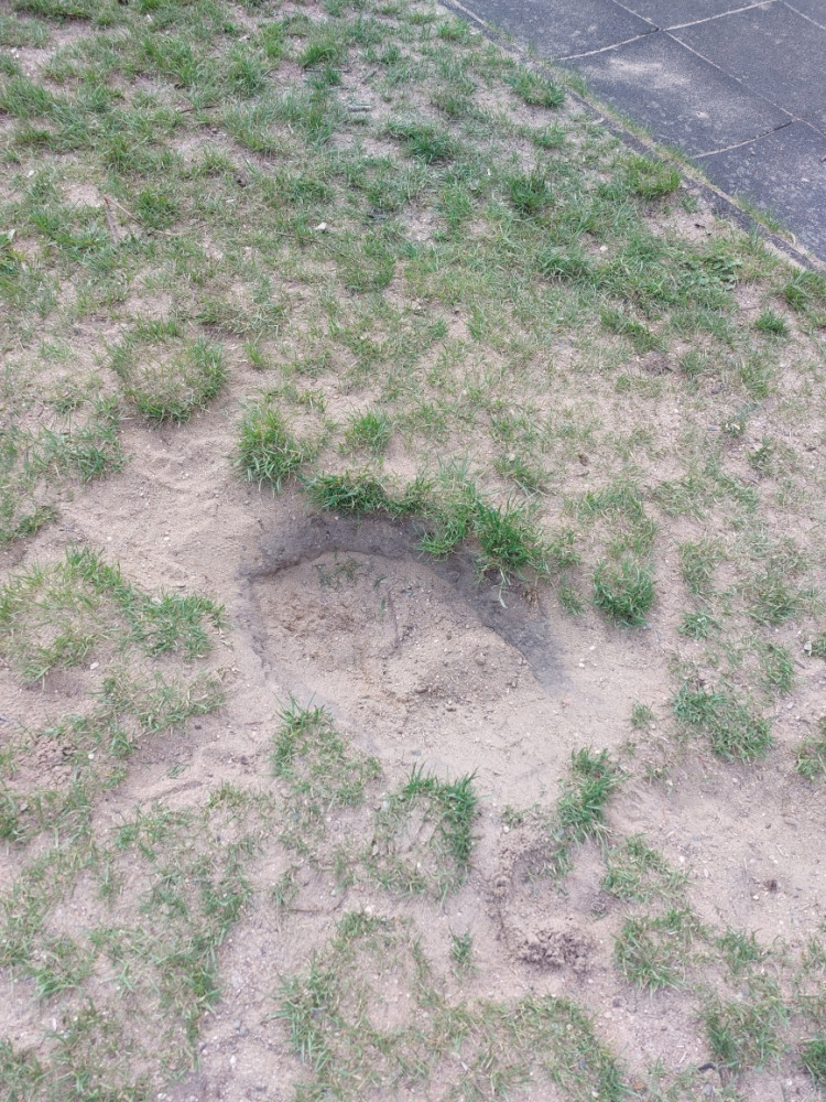 díra v zemi na dětském hřišti Balkán,hrozí úraz při běhu či spadnutí dovnitř