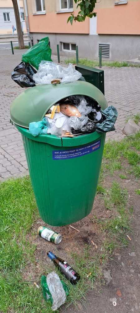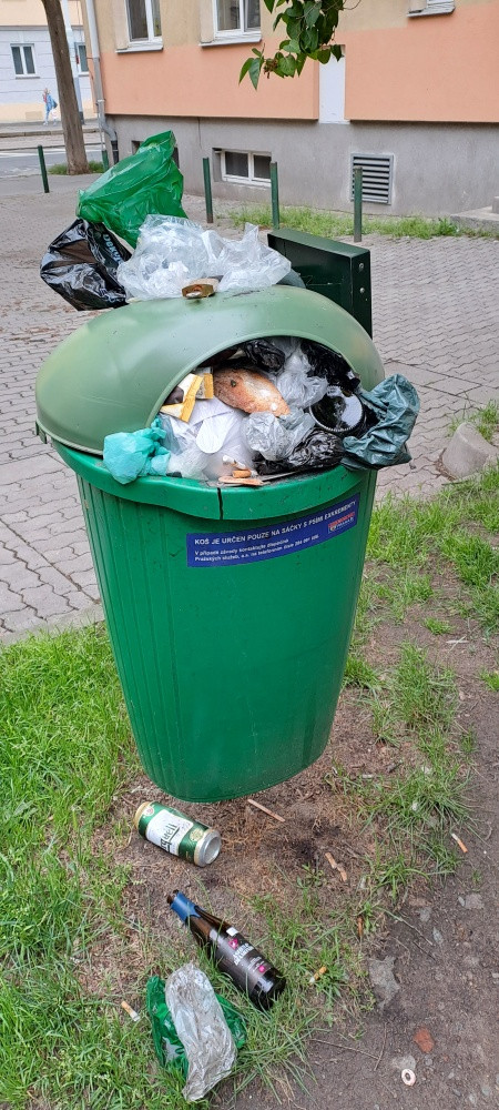 v ulici Hartigova za policejní stanici je odpadkový koš na psí exkrementy. nevysypany.
