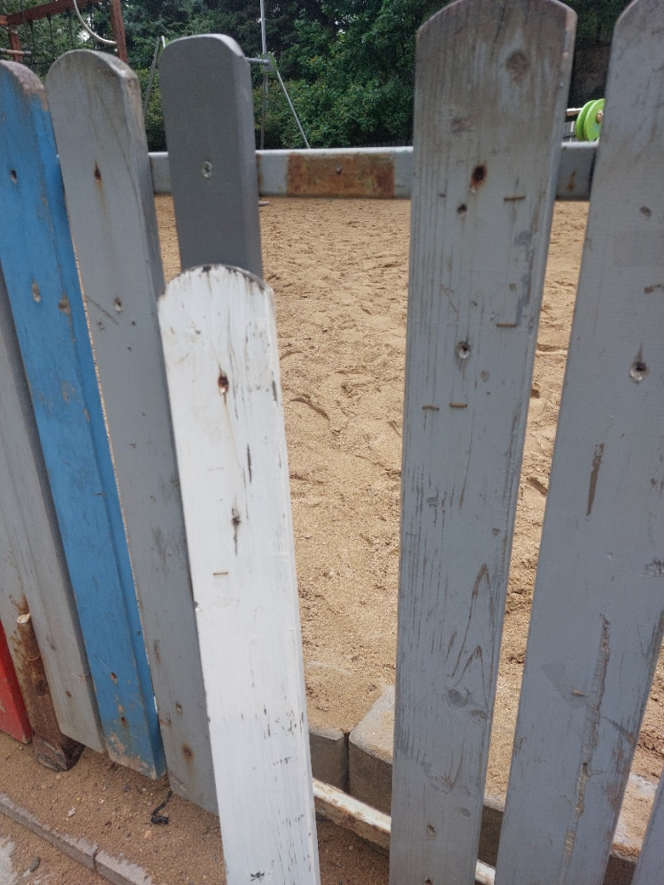 poškozený plot u dětského hřiště