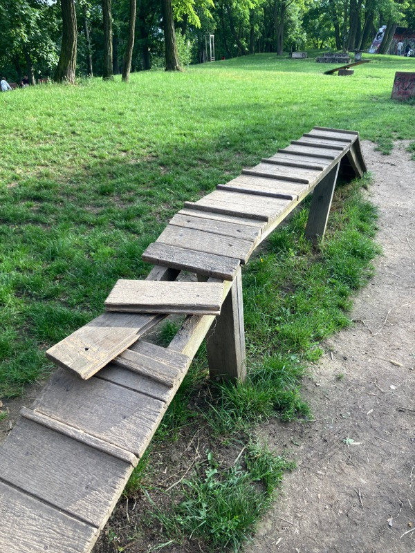 Rozbitá překážka na psím hřišti v Parukářce