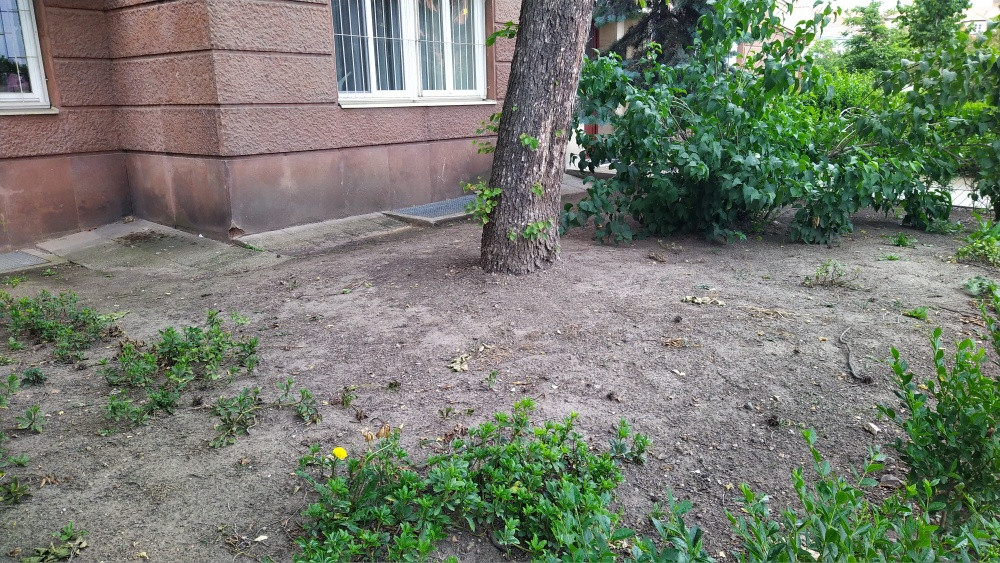 bylo by možné zařídit vysazení zeleně (travního porostu) na holá místa v předzahrádce v ulici Malešická 2407)33 z důvodu zvýšené prašnosti a eroze půdy.