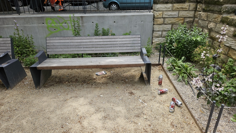 nepořádek v parku u lavicek