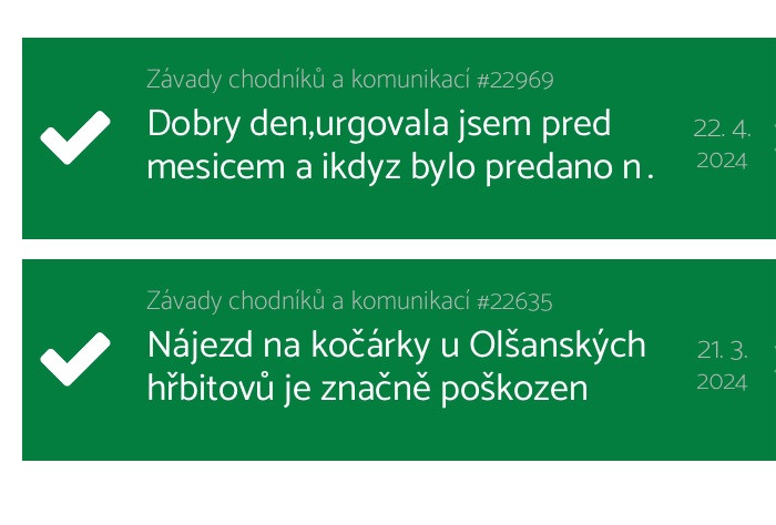 Najezd na kocarky Olsanske hrbitovy. Hlaseno jiz od brezna dvakrat - vzdy stejna odpoved - je to v reseni a nyni bude vyrizeno TSK. Cerven a stale se nic neopravilo. Status hlaseni - vyrizeno. Neuveritelny alibismus…