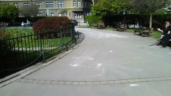 Na Škroupovo nám. Od Blodkovy ulice na parkové cestě rozbité sklo. Prosím o úklid.
