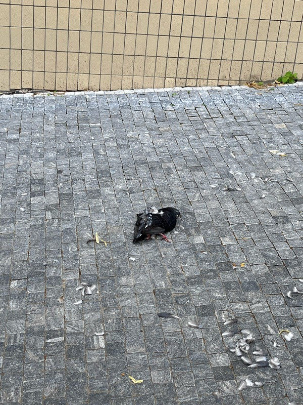 Mrtvý Holub u Radhošťské 24 na chodníku