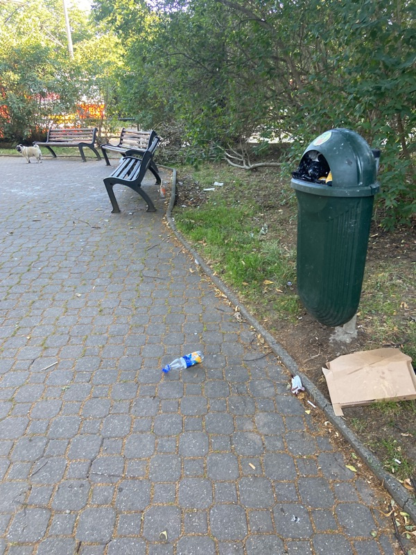 Velký nepořádek kolem laviček a v tomto parku celkově. Koše jsou uz několikáté den přeplněné. Holt jak je léto, lidi jsou více venku…plus je tu spadla větev, jak byl velký vítr.