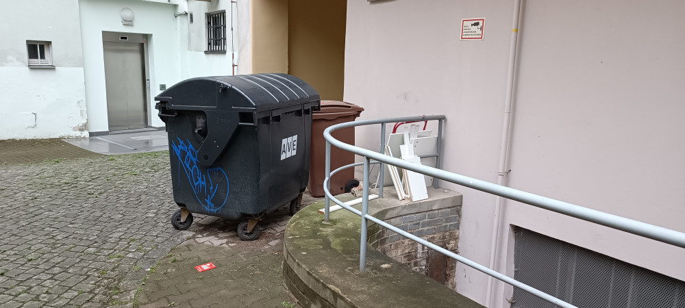 Prosím o odvoz velkoobjemového odpadu vedle kontejnerů na směsný odpad ve dvoře domu Soběslavská 35, kontejnery jsou hned za průjezdem do dvora.