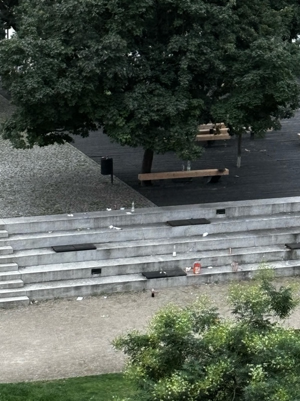 Prosím o úklid. Jako každý den nepořádek na Komenském náměstí po lidech, kteří neumí po sobě uklízet. Děkuji.