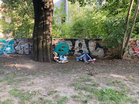 Prosím o uklizení nepořádku (poházené staré oblečení...) podél zdi a u protilehlých laviček na cyklostezce. Děkuji