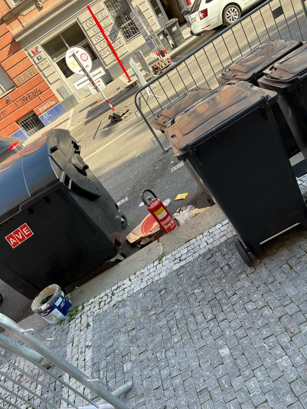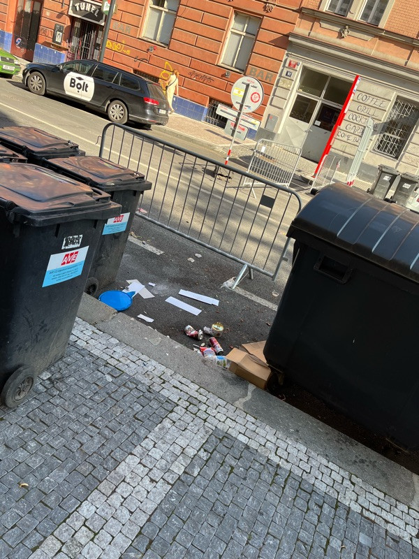 Prosim o uklid kolem kontejneru ( bordel po popelarich)