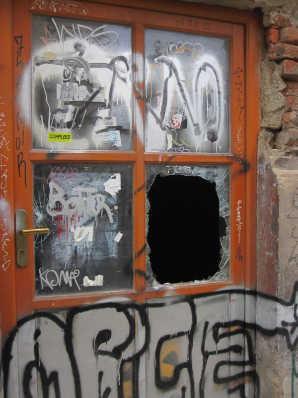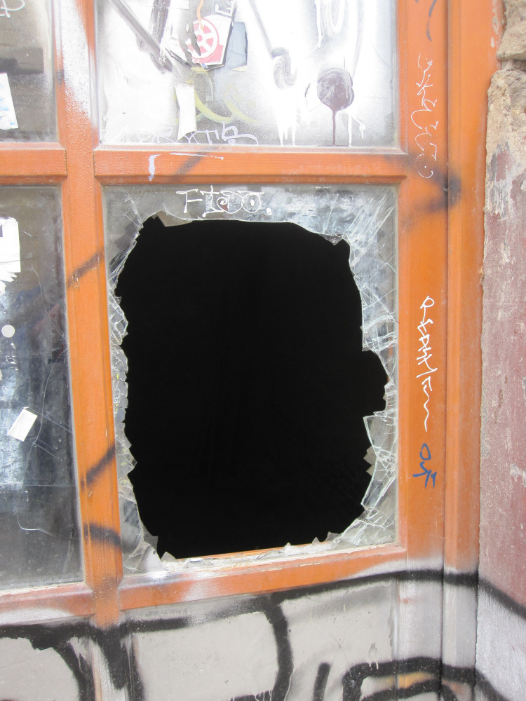 Ostudný dům na rohu ulic Husinecká a Krásova 39 má už delší dobu rozbité sklo ve dveřích. Jednak hrozí, že vypadne úplně a někoho zraní, a jednak opilci dírou házejí dovnitř odpadky. Jelikož v domě už hořelo, třeba tam někdo odhodí nedopalek a zase bude malér.