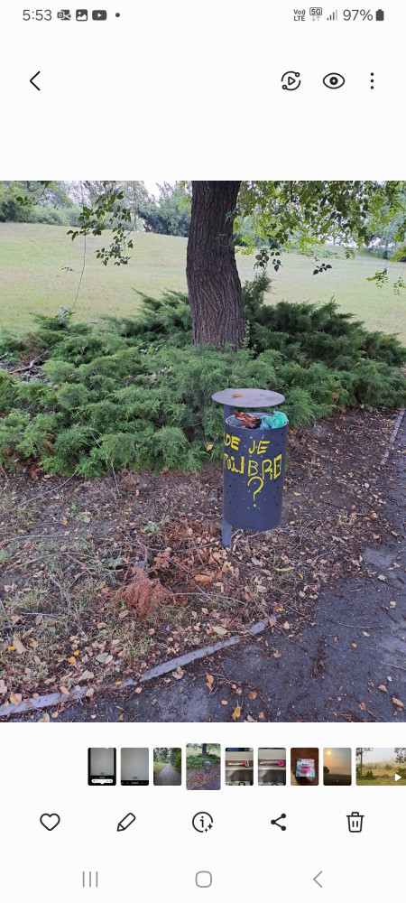 Park Zizkovské pece postrikaný nově odpadkový koš.