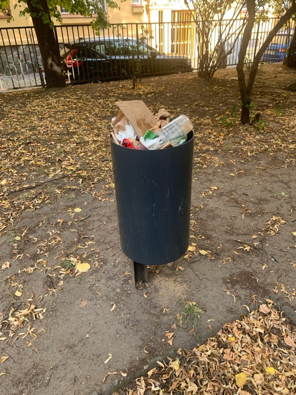 Přeplněné oba koše, plus nezametene listí a kůra na cestách - nedá se jezdit na odrážedlech