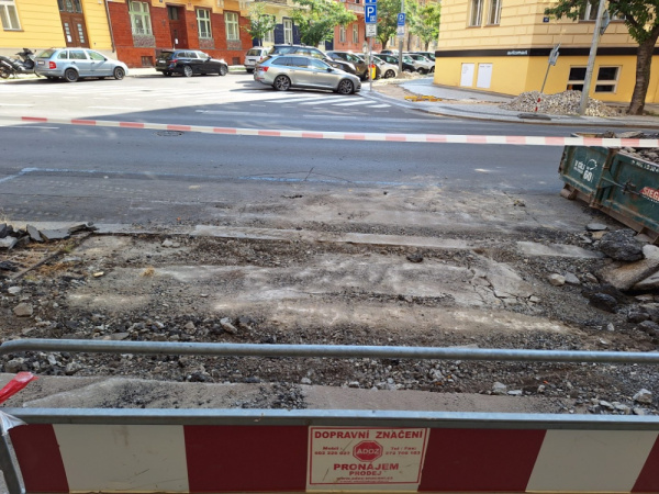 kamenina sterk z rozwbraneho chodniku ja na vozovce, odrazi se od aut na chodnik, muze trefit chodce