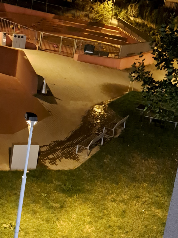 Dobý den. Bohužel, nic se nezměnilo. Voda teče po chodníku každou noc. :(