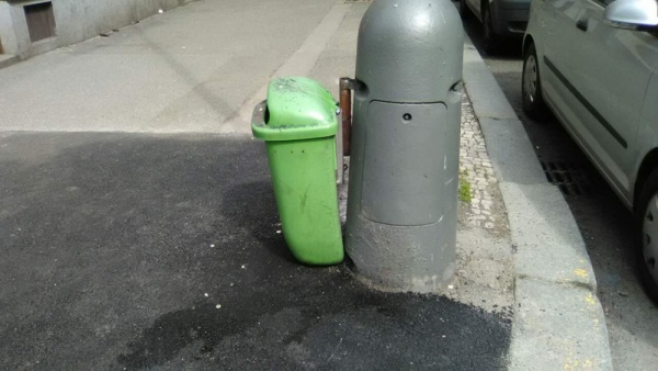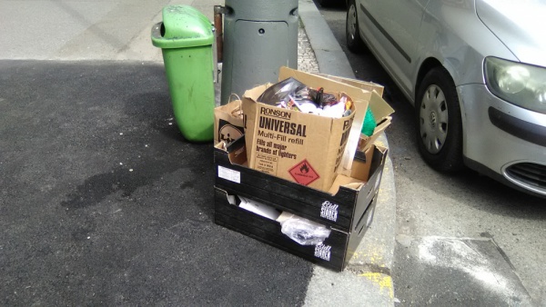 Skládka na chodníku.