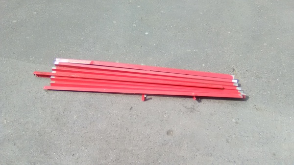 Kovové tyče na chodníku.