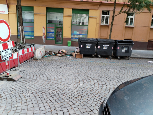 Dobrý den. Bydlím Zelenky-Hajského 13 a ulice je teď slepá kvůli opravě ulice Hartigova. Jakési bistro má popelnice v naší ulici a jejich odpadky se válejí po kouscích až k Rokycanově.