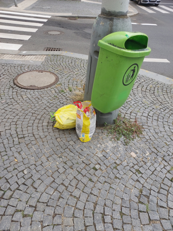 Pohozene tašky s odpadky.