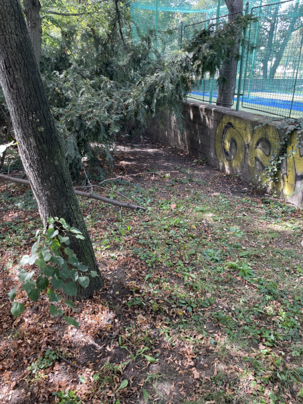 Olšanská - v keřich vedle tenisu ložnice. prosím uklidit