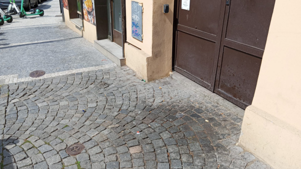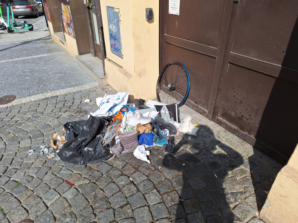 Ulice Husitská 37 někdo asi v noci udělal nepořádek před domem