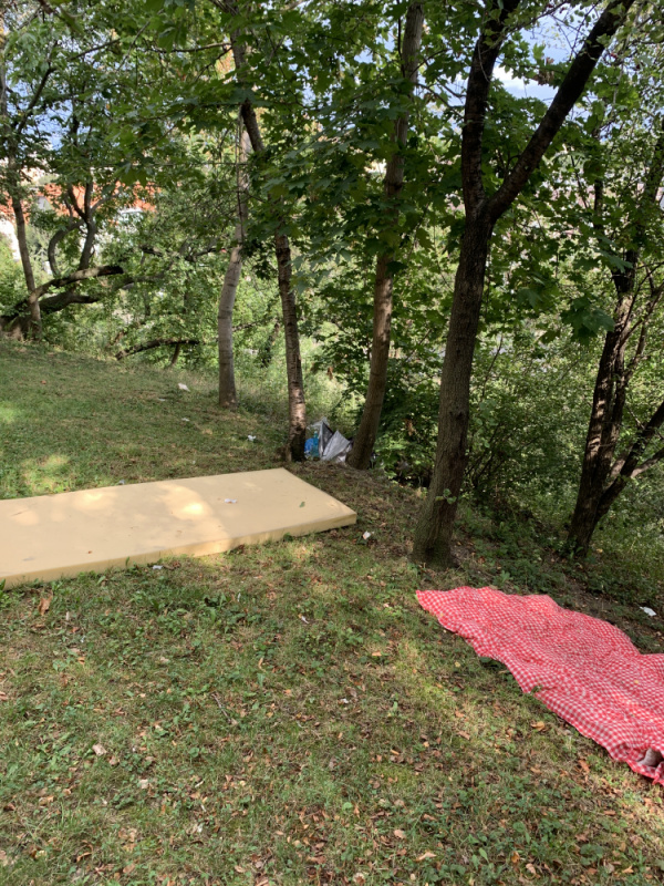 Nepořádek na okraji parku Židovské pece. Je to nad ulicí Rixdorfská . Na okraji svahu nad novými domy. Poprosil bych o prořezání keřů a prosvětlení této části aby to tu nebylo tak skryte. Pak je to zde raj pro pitky a nasledne co vypiji, tak zde i nechaji.Dekuji