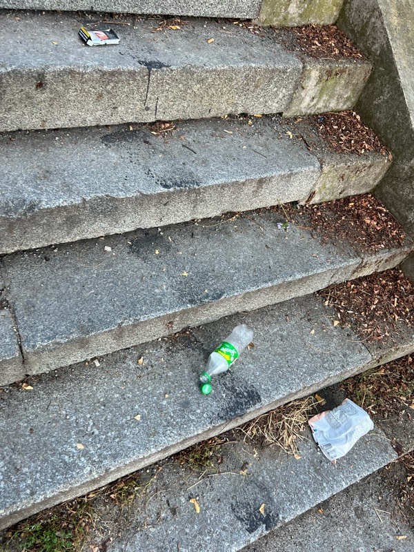 Schodiste do parku z ulice Kalisnicka je ve spatnem stavu, navic je plne odpadku a shnileho ovoce