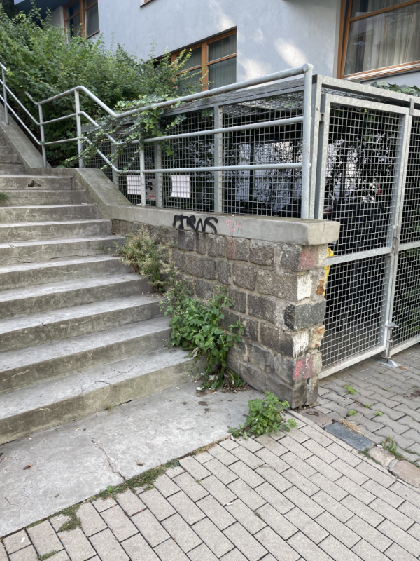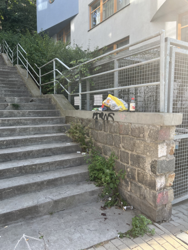Dobrý den, poházené odpadky na zídce u schodů Na Křížek.