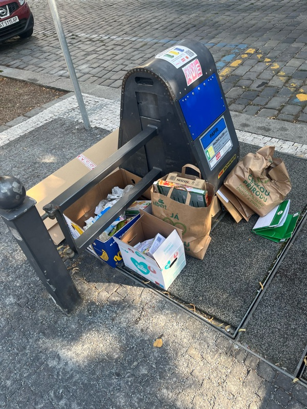 Neporadek kolem kontejneru na papir. Diky za Vasi praci!