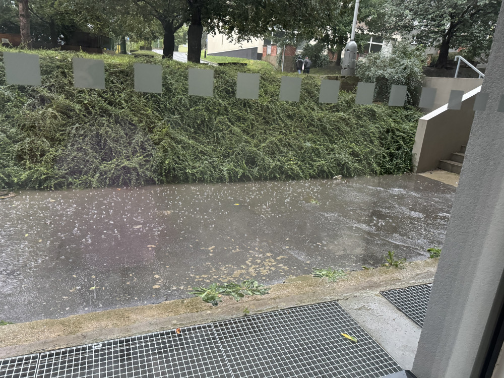 Blahoslavova 233/6 ze zadní části domu (zadní vchod) ucpaný kanál vzniká riziko vniknutí vody do domu a protečením zkrze něj. Při dalším dešti.