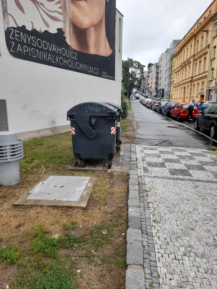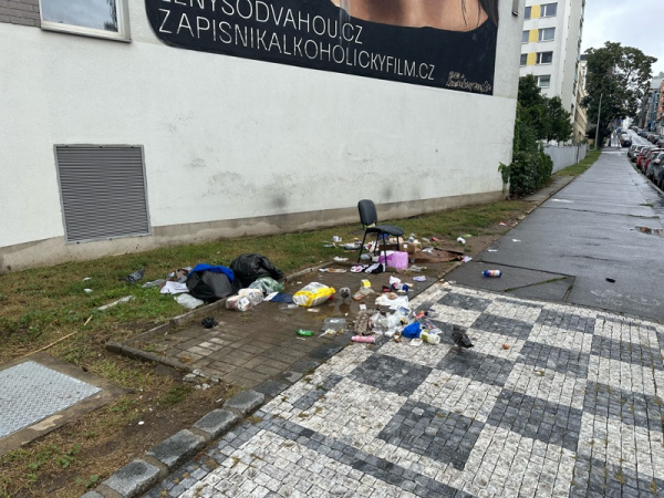 Nepořádek na rohu ulic Rokycanova a Jeseniova.