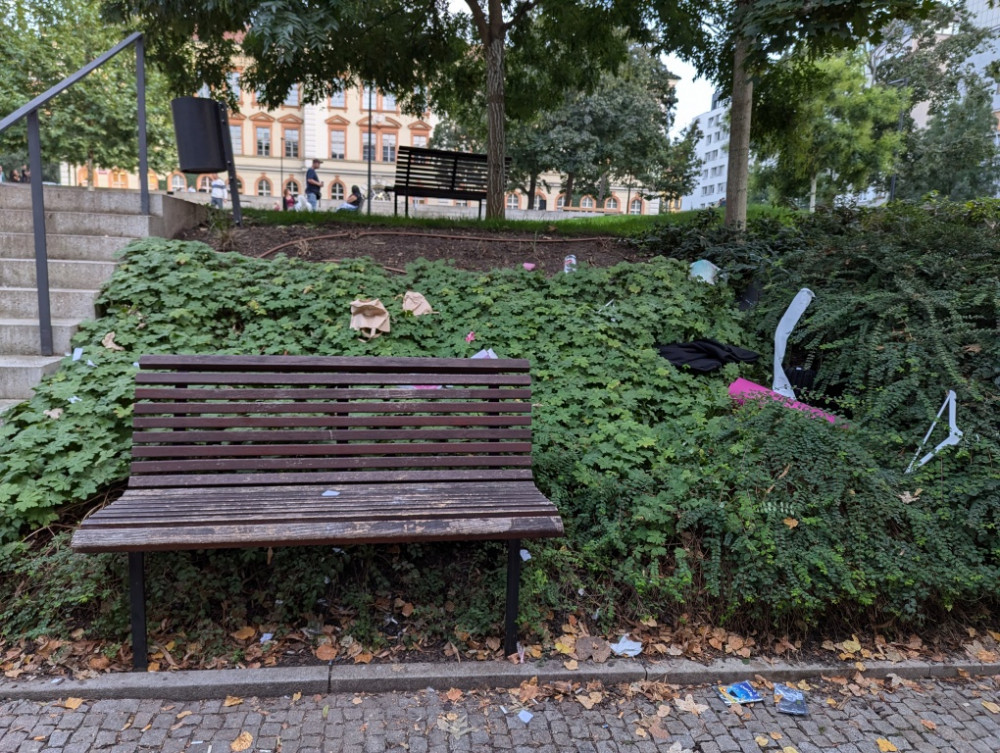 děkujme za Váš podnět. Bude poklizeno úklidovou firmou dle harmonogramu. Úklid na Komenského náměstí probíhá 5x týdně.
