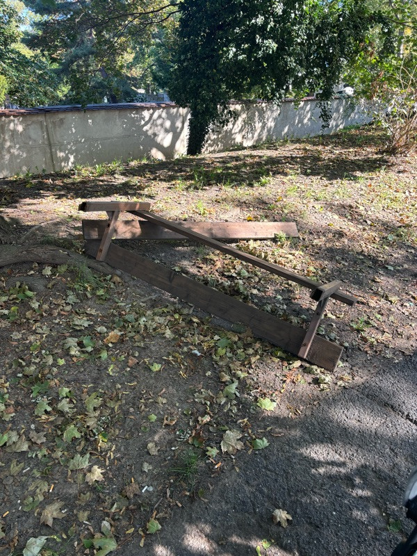Zničená a vyvrácená lavička mezi hřbitovem a parkovištěm. Moc děkuju