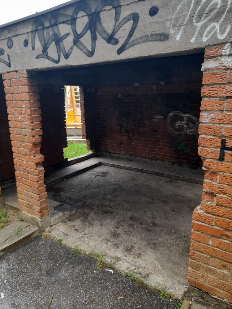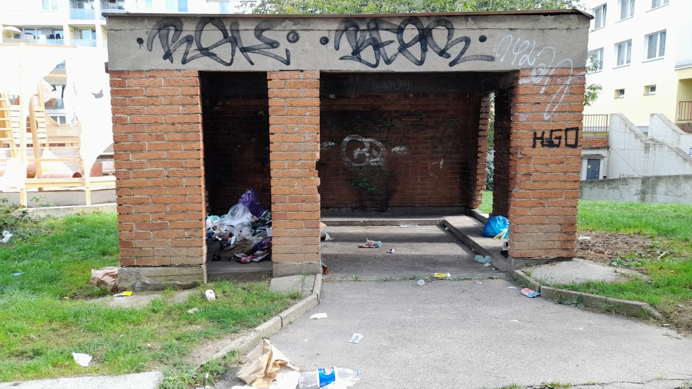VB Jeseniova X Žerotínova - nepořádek v domečku na kontejnery a okolo něj