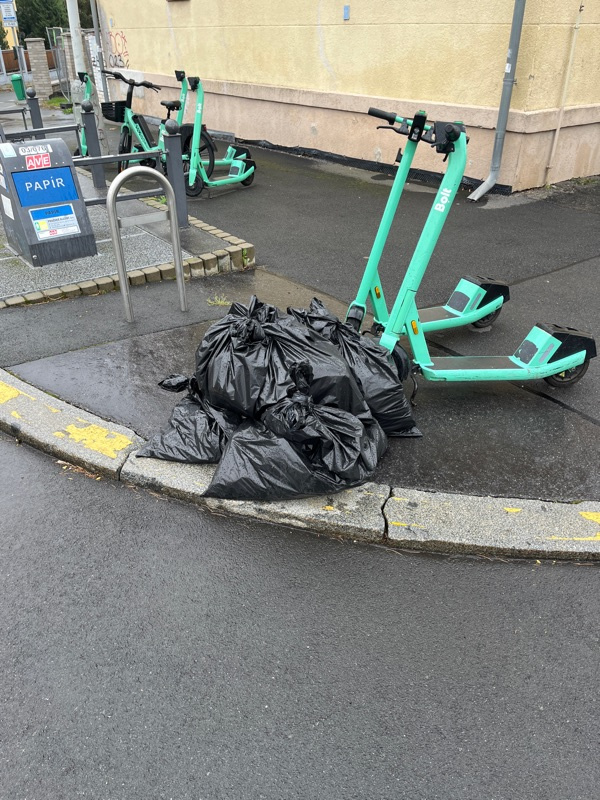 Černé pytle se směsným odpadem. Děkujeme za úklid!