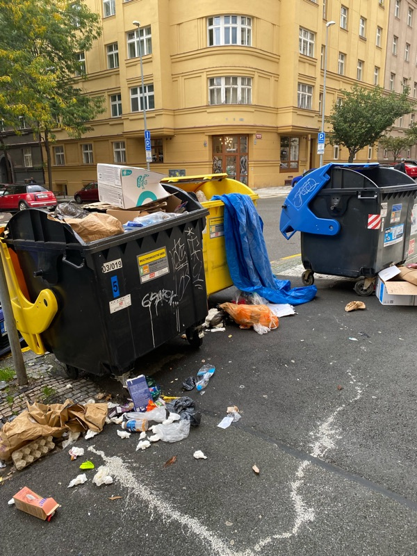 odpad z popelnic na chodniku. Ulice Premyslovska