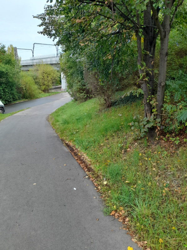 U začátku cyklostezky A257 se u přístupového chodníku k tramvajové zastávce Krejcárek u lampy 303 323 nachází pohozená dvojice prken.