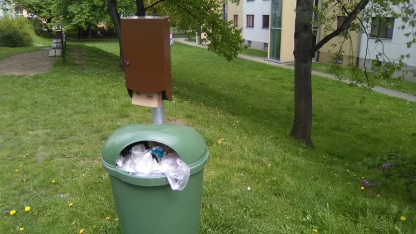 Prosime doplnit sáčky na psí exkrementy u koše ( který je přeplněný) v ulici K Chmelnici 3,5,7 zadní objekt. Děkujeme