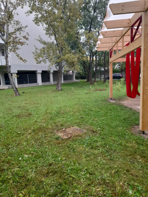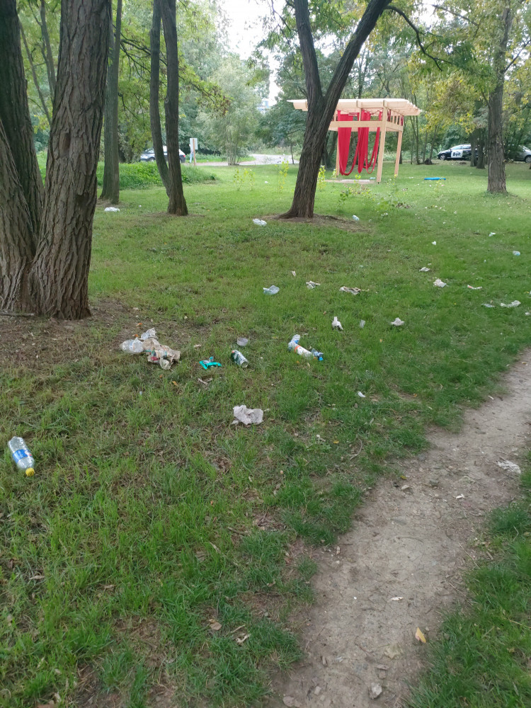 I baráku vedle pergola Landscape Festival, kde teď každou noc přespává bezdomovec a hází kolem sebe odpad.