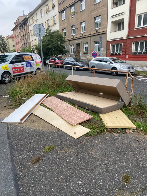 Odložená postel kousek od kontejnerů na tříděný odpad