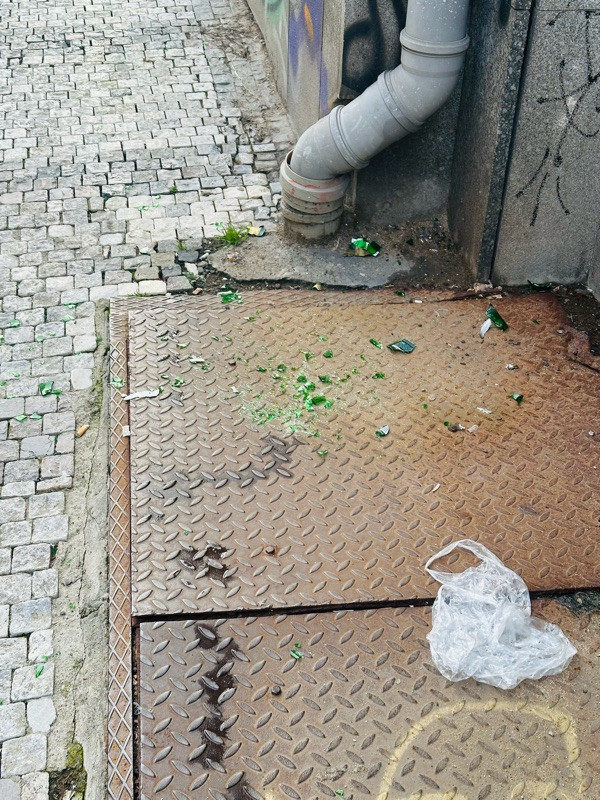 střepy na chodníku