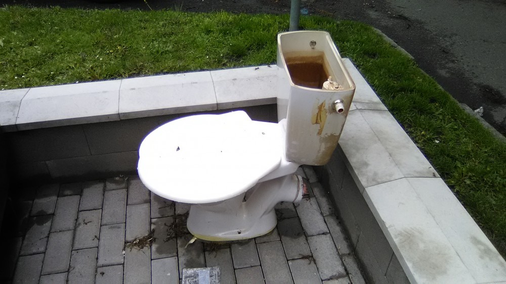 Záchod u popelnic.