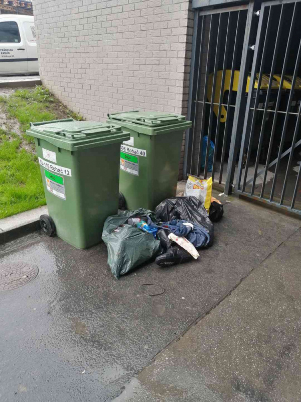 Dobrý den, na pozemku parc.č. 1887/69 a 1887/70 (před domem Roháčova 40) je rozházený odpad.