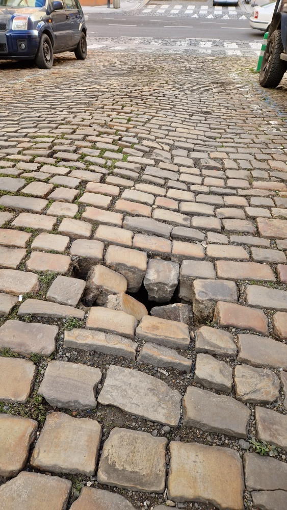 Prosím o opravu díry v silnici je Jeronýmově ulici. JK